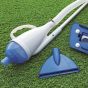The Bestway AquaCrawl Pool Vacuum is simple to set up and easy to use. Just attach to your filter pump with 1 of the included adapters and start cleaning. Debris is sucked into a removable and reusable leaf bag. The vacuum set contains 4 lightweight aluminium poles which join together to create a 2,24 m long pole. This vacuum is great for cleaning pools with a diameter smaller than 4,57 m. There are 2 interchangeable conversion nozzles that connect to the pole. One has a brush for battling stubborn grime and the other has a standard pool vacuum head for sucking up loose debris. So you effectively get 2 pool vacuum cleaners in 1! With the Bestway AquaCrawl Pool Vacuum, you'll spend less time cleaning out your above ground pool!