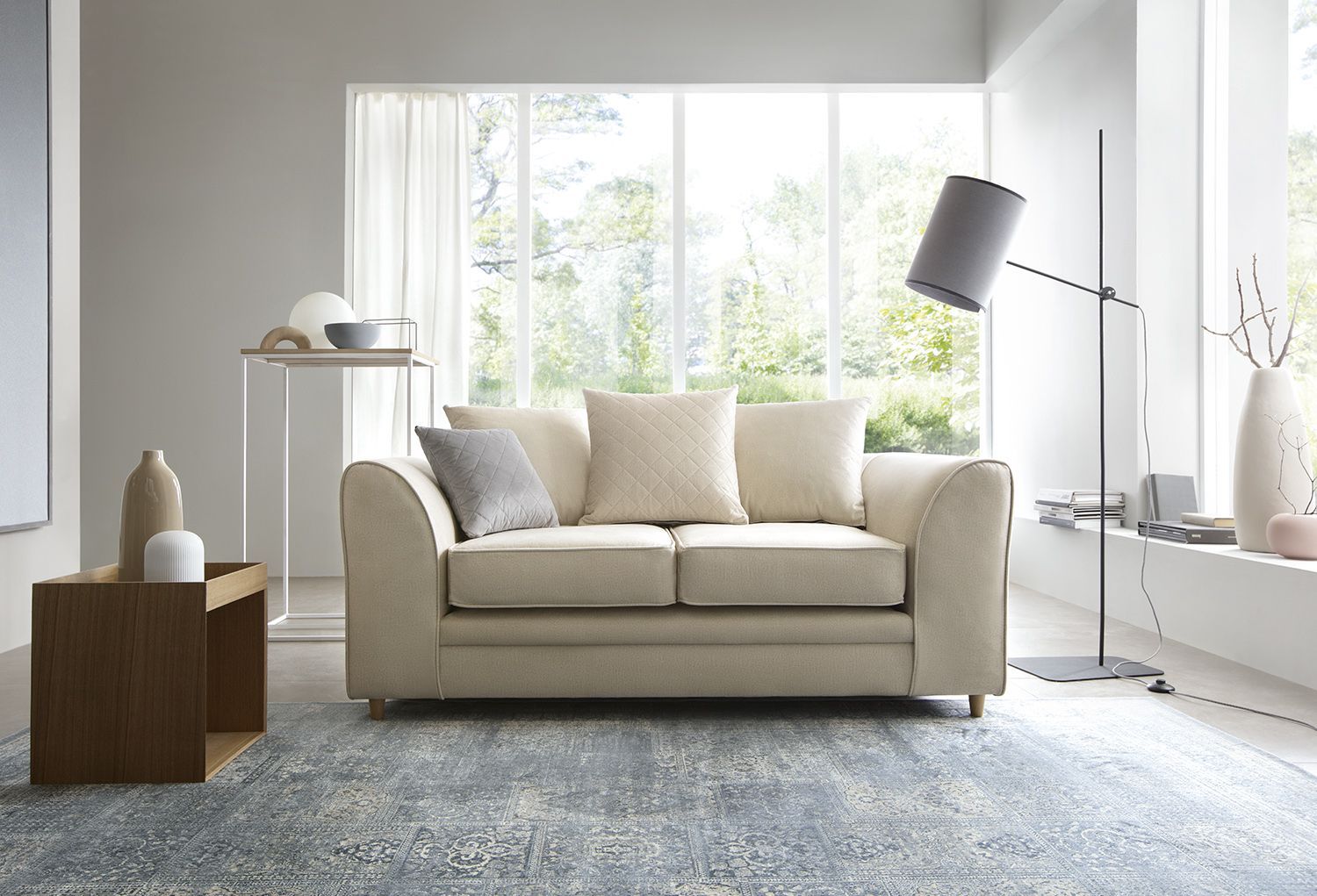 A fabulous cream 2 seater sofa less than £400? End your search right here, with this beauty from our very popular Chicago style collection. Stylishly contemporary with clean straight lines and scatter back cushions, this sofa just oozes present-day home décor fashion. When it comes to comfort, enjoy heaps of plush cushioning from both thick foam block seats and generously fibre filled back cushions. A sofa you will love to sit on and take in with your eyes, day after day!