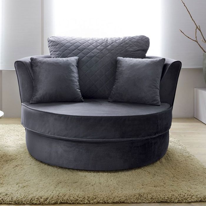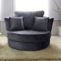 Swivel in style with this stunning 360° swivel chair. Generous for one and a very cosy for two, this might just be your new favourite seat in the house. A thick seat cushion, tall flared back and a couple of toss pillows rested on a half-moon pared back doubling as an armrest will leave you with nothing to complain about. You could be watching the telly one moment and swivel around to join the family conversation the very next moment. A stylish, comfortable and versatile chair, always at your service.