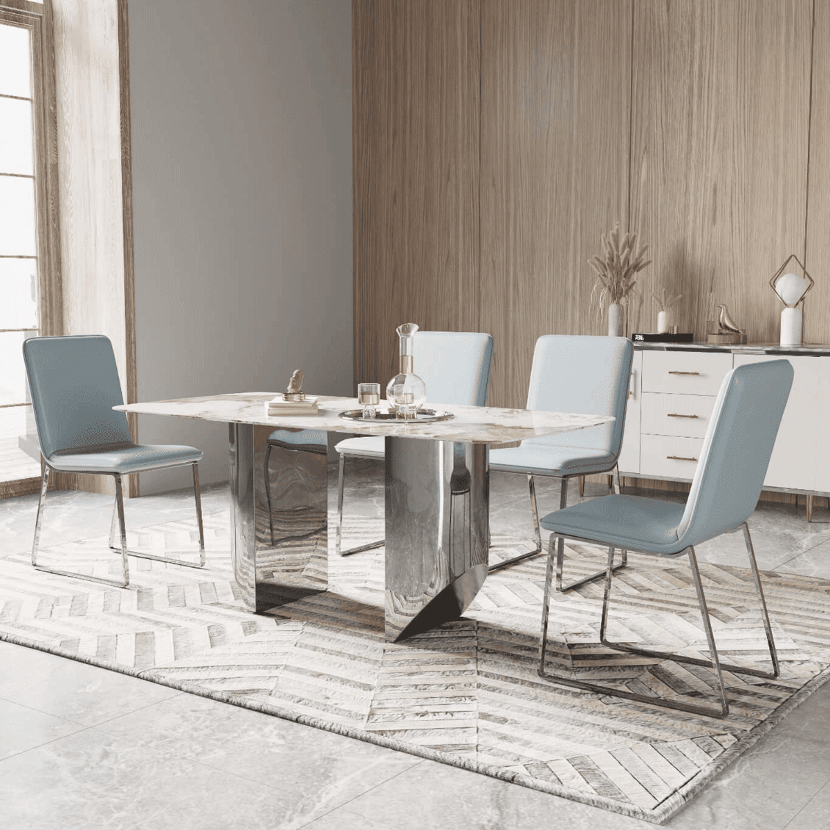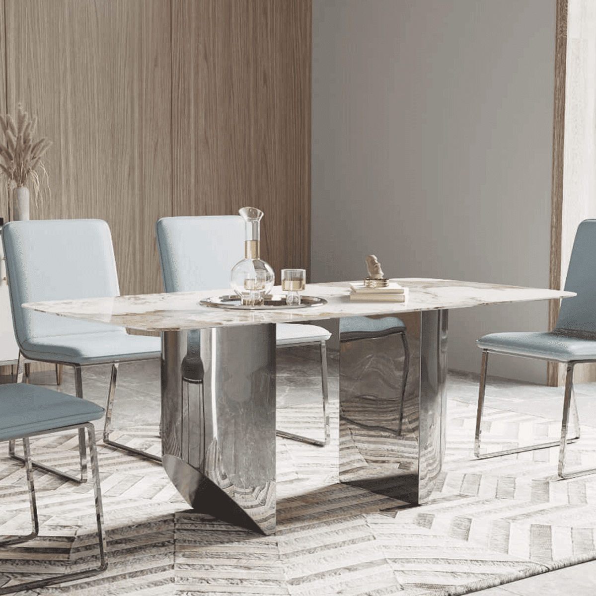 - Light Blue Aesthetics: The light blue color adds a refreshing and sophisticated vibe to your dining area, complementing various decor styles.