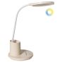This practical and modern table lamp offers the perfect blend of functionality and style. Made from durable synthetic material, it features stepless dimming for smooth brightness control and three CCT modes, allowing you to adjust the colour temperature to suit your needs. The integrated nightlight function provides a soft, ambient glow to gently illuminate your room at night. With its built in pen holder at the base, it keeps your desk organised while saving space. Compact, versatile, and user friendly, this lamp is ideal for studying, working, or creating a cosy atmosphere in your home.