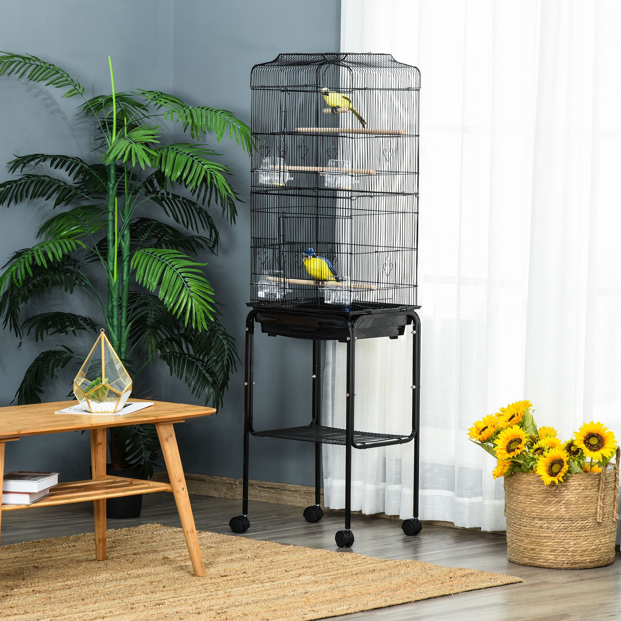 Bird Cage Budgie Cages for Finch Canary Parakeet with Stand Wheels Slide-out Tray Accessories Storage Shelf, Black 36 x 46.5 x 157 cm
