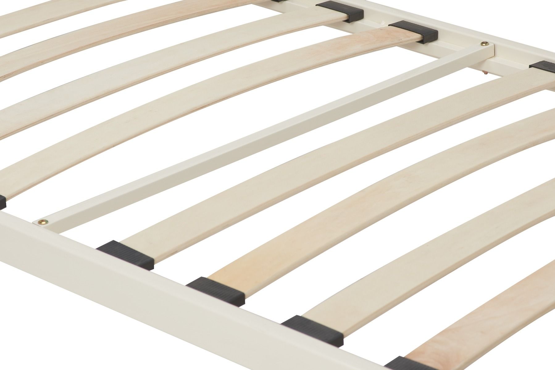Traditional in style, the Atlas bed features a detailed framework with antique brass finials – adding luxury to any bedroom. The Atlas has a steel frame finished with an epoxy powder coated paint process and is available in either a black or cream option. This frame also has a sprung slatted base to give natural bounce, adjusting to where pressure is most exerted to provide greater comfort. The maximum weight load for the 3′ frame is 100 kg, and for all other sizes it is 250 kg. Please note: Birlea beds are only suitable for a UK standard size mattress.