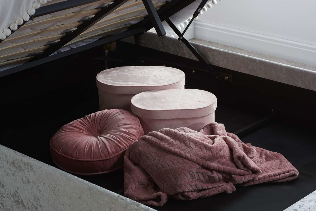 - Fabric ottoman bed features strong gas-lifts for easy access the handy storage space underneath the bed.