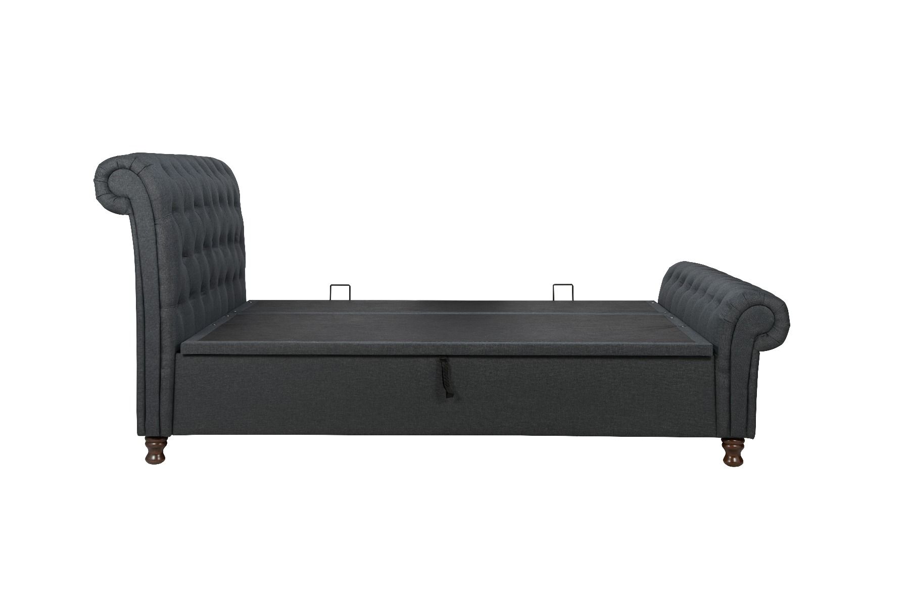 This fantastic bed frame combines practicality with style with its striking rolled headboard and matching foot-end. The platform top ottoman base features gas lift arms which can be fitted to open on either the left or right-hand side of the bedstead giving your customers that extra flexibility. Upholstered in polyester the Castello side ottoman is available in a steel velour, charcoal or grey fabric. A protective base board is also included. The gas piston strength on this frame is 85 N and can support mattresses up to the weight of 65 kg. The maximum weight load for the 4′6 frame is 300 kg, the 5′ frame is 400 kg, and the 6′ frame is 450 kg. Please note: Birlea beds are only suitable for a UK standard size mattress and the recommended maximum mattress height is 3050 mm. The mattress needs to be on the bed for the pistons to work.