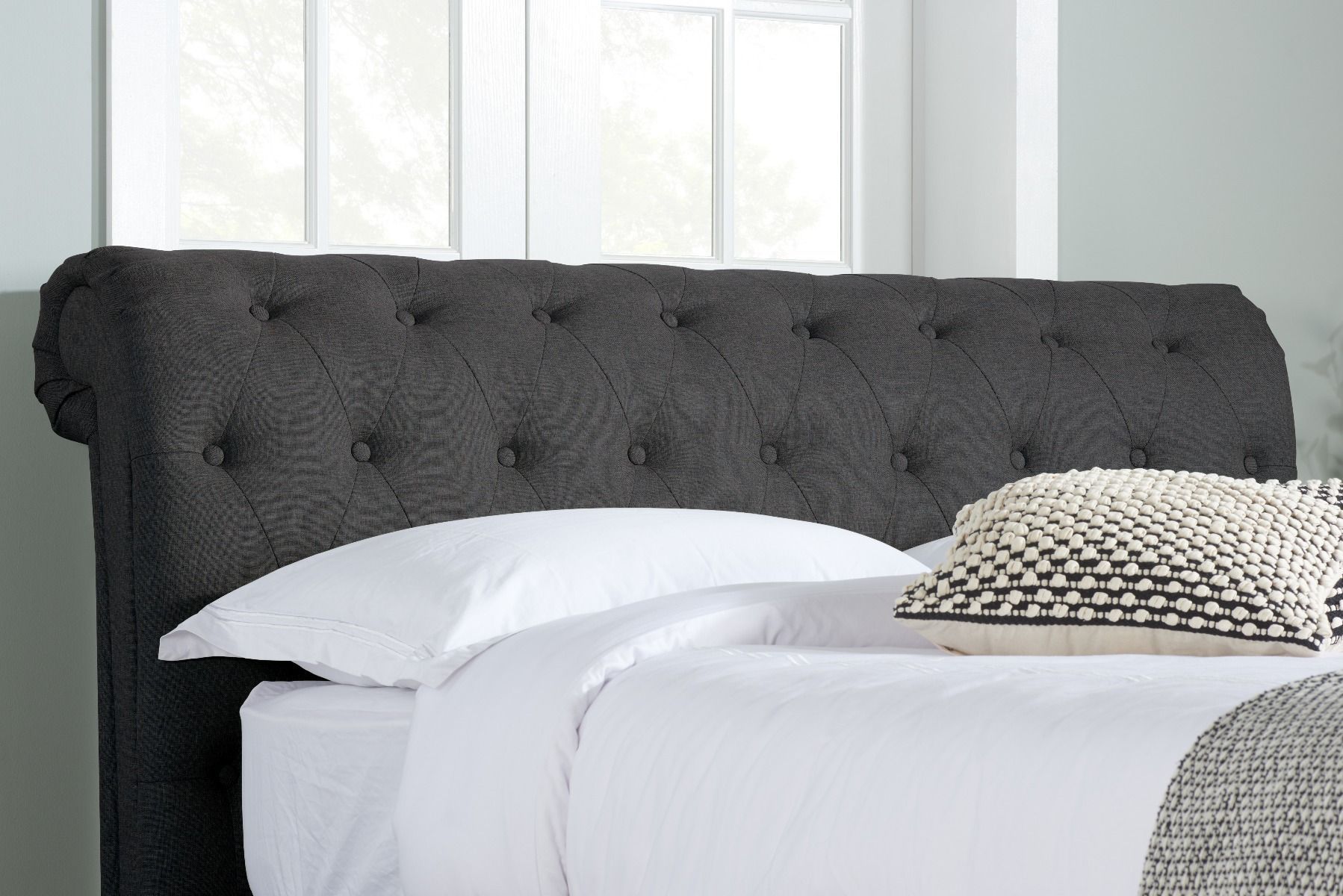 - Upholstered in polyester the Castello side ottoman is available in a steel velour, charcoal or grey fabric