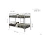Multi functional and ultra-secure, the Corfu bunk bed neatly separates into two single beds, and looks great with its slick metallic finish. With an epoxy powder coated paint finish and beech coloured rubberwood post caps, this frame is available in silver. The ladder can be positioned in a choice of two locations to provide ultimate flexibility. Steel mesh bases allow for air circulation beneath the mattresses. Maximum mattress height is 200mm. The Corfu frame is suitable for children only. The maximum weight load for each frame is 85 kg. Note: It is advised, the top bunk are not suitable for children under 6 years old. Please note: Birlea beds are only suitable for a UK standard size mattress.