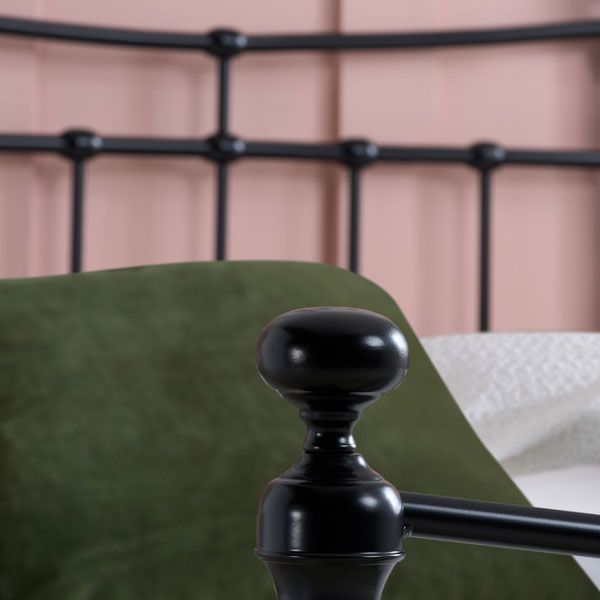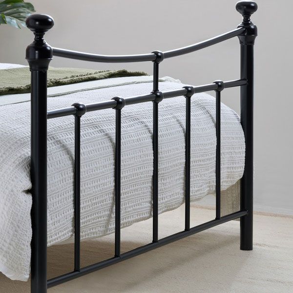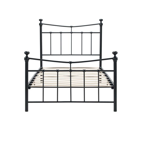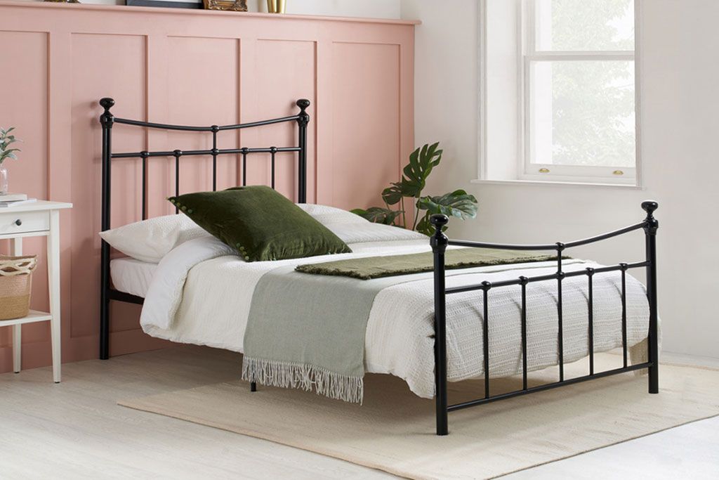 A charming centrepiece, the Emily has beautiful curved rails and carefully designed finials to give a charming traditional feel. Constructed from steel with an epoxy powder coated paint process, the Emily is available in either a black or cream finish. This frame has a sprung slatted base giving natural bounce, adjusting to where pressure is most exerted to provide greater comfort. The maximum weight load for the 3′ frame is 100 kg, all other frames is 250 kg. Please note: Birlea beds are only suitable for a UK standard size mattress.