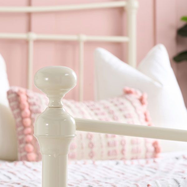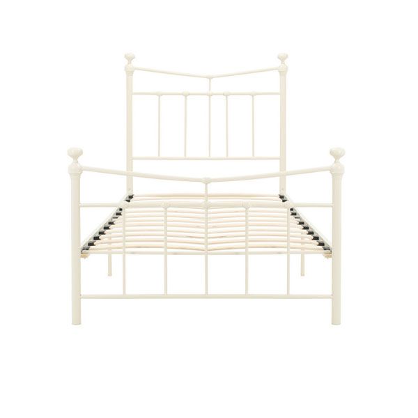 A charming centrepiece, the Emily has beautiful curved rails and carefully designed finials to give a charming traditional feel. Constructed from steel with an epoxy powder coated paint process, the Emily is available in either a black or cream finish. This frame has a sprung slatted base giving natural bounce, adjusting to where pressure is most exerted to provide greater comfort. The maximum weight load for the 3′ frame is 100 kg, all other frames is 250 kg. Please note: Birlea beds are only suitable for a UK standard size mattress.