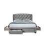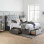 The Hope bed is perfect for making a grand style statement for your bedroom, with a stylish and elegant design. The Hope bed is upholstered in a beautiful soft velvet grey fabric with a large winged back headboard with lovely tufted detailing. The bed feautures four large storage drawers, for storing away any clothes, bedding or essentials and keeping your room organized. The frame has a solid sprung slatted base for a natural bounce and providing extra support and comfort. The maximum weight load for the 4′6 frame is 300 kg, the 5′ frame is 400 kg, and the 6′ frame is 450 kg. Please note: Birlea beds are only suitable for a UK standard size mattress and the recommended maximum mattress height is 3200 mm.