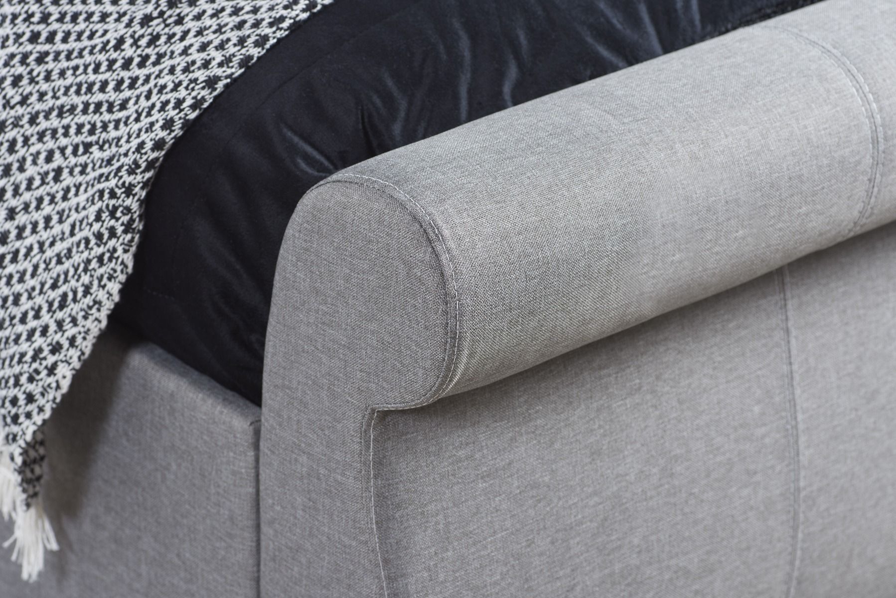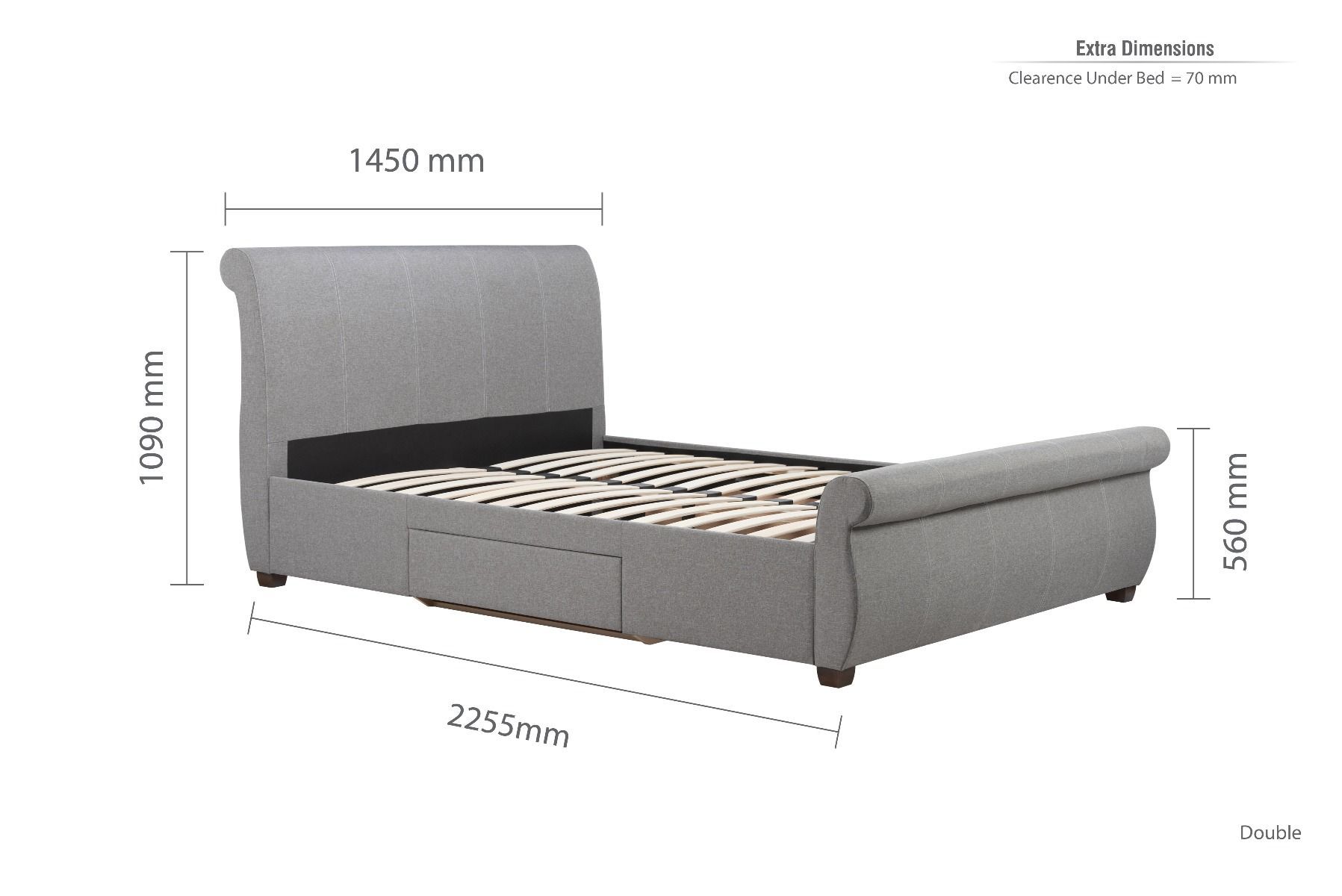 The Lancaster bed has a sophisticated and timeless sleigh bed design, with an attractive rolled headboard and footboard, perfect for any bedroom. The bed is upholstered in a stylish grey fabric and has a solid sprung slatted base for a natural bounce and greater comfort. The bed has 2 storage drawers offering a convenient space for any bedding, clothes or accessories. The maximum weight load for the 4′6 frame is 300 kg, and 400 kg for the 5′ frame. Please note: Birlea beds are only suitable for a UK standard size mattress and the recommended maximum mattress height is 2300mm.