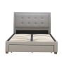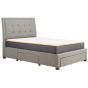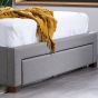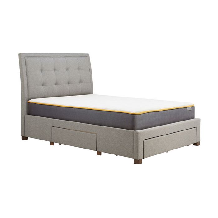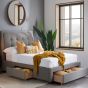 The Shelby bed boasts a stylish, classic yet sophisticated design that will enhance any bedroom. The shelby bed is upholstered in a beautiful soft grey fabric with a detailed deep-buttoned headboard. The bed feautures three large storage drawers, for storing away any clothes, bedding or essentials and keeping your room organized. The frame has a solid sprung slatted base for a natural bounce and providing extra support and comfort. The maximum weight load for the 4′6 frame is 400 kg, and the 5′ frame is 450 kg. Please note: Birlea beds are only suitable for a UK standard size mattress and the recommended maximum mattress height is 3200mm.