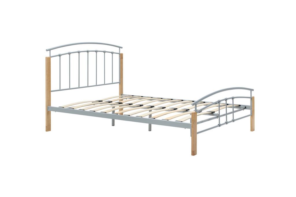 Birlea Tetras Beech and Silver Metal Bed Frame - Double 4ft6