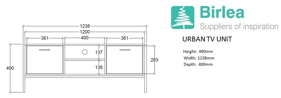 The Urban range is perfect for providing an industrial modern chic design to your home. The urban is crafted from a solid metal frame with a stylish industrial wood effect finish and black metal handles. The urban TV cabinet features 2 cupboard doors and an open shelf space offering plenty of storage space for your players, consoles or accessories.