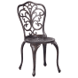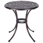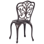 This vintage-inspired metal bistro set includes two matching chairs and one round table, all made from durable, yet lightweight aluminum. Designed for outdoor use, the set ensures long-lasting beauty and functionality due to its elegant brown powder coating. The beautiful detailing, stylish curved legs and patterned backrests all contribute to its vintage charm, providing both comfort and style. With its timeless charm, it creates the perfect setting to enjoy your morning coffee in your garden with your loved one.