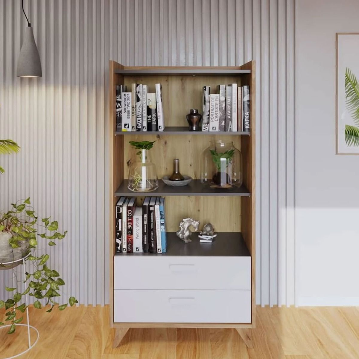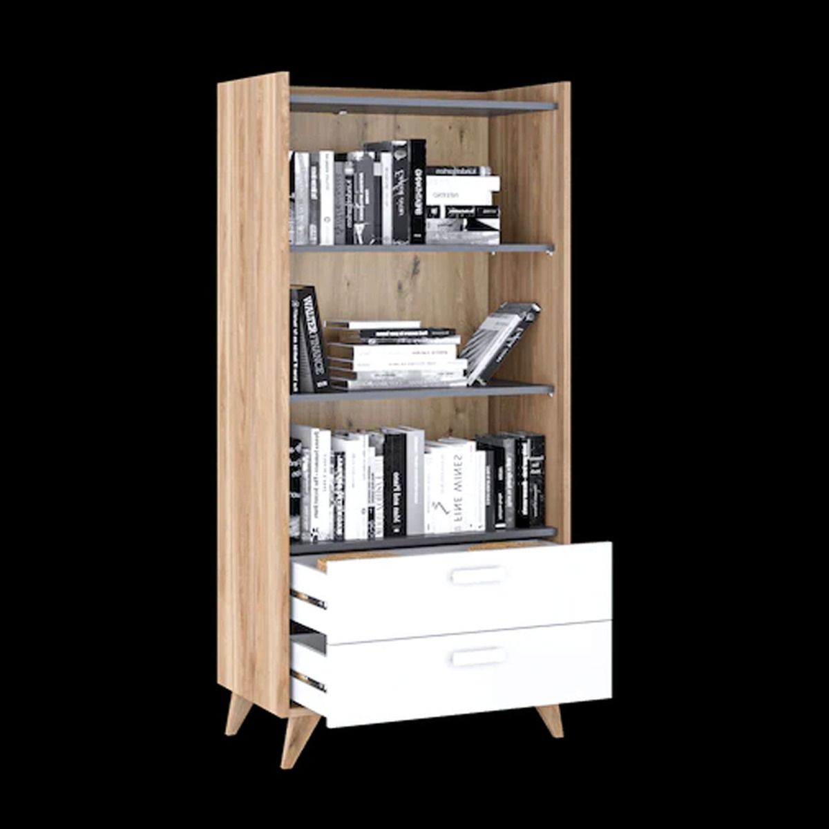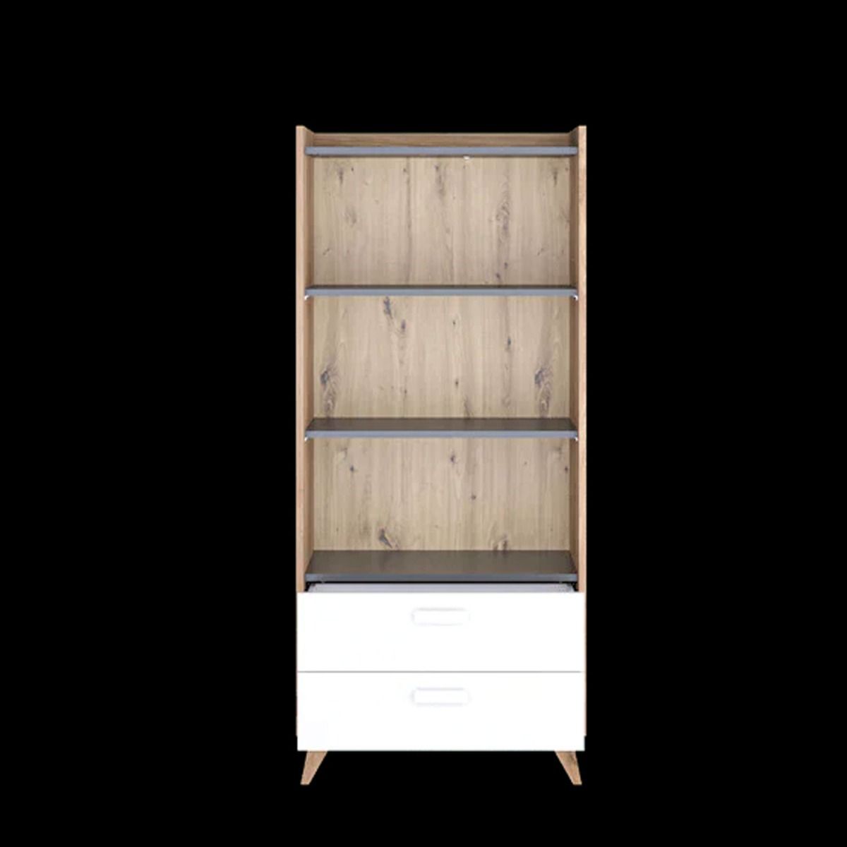 Add a touch of sophisticated style to your home with the beautifully crafted Bitternut bookcase. Finished in a gorgeous combination of colours, it will effortlessly blend in any modern or contemporary decor. Featuring two spacious shelves and a pair of drawers for storage, it can be used to keep books, magazines, music boxes and other knick-knacks neatly organized.
