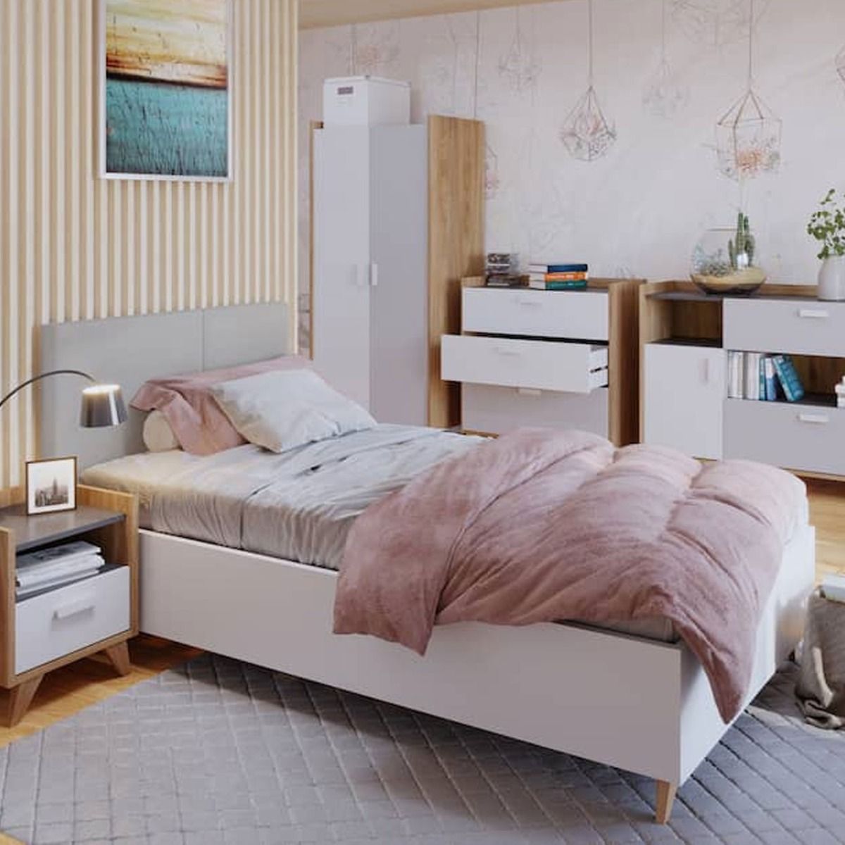 Prestigious, modern and sleek – the Bitternut bed is crafted from a solid, high-quality 16mm laminated board that makes this bed a testament to quality. It is finished in a gorgeous combination of colours and offers a comfy, upholstered headboard for support.