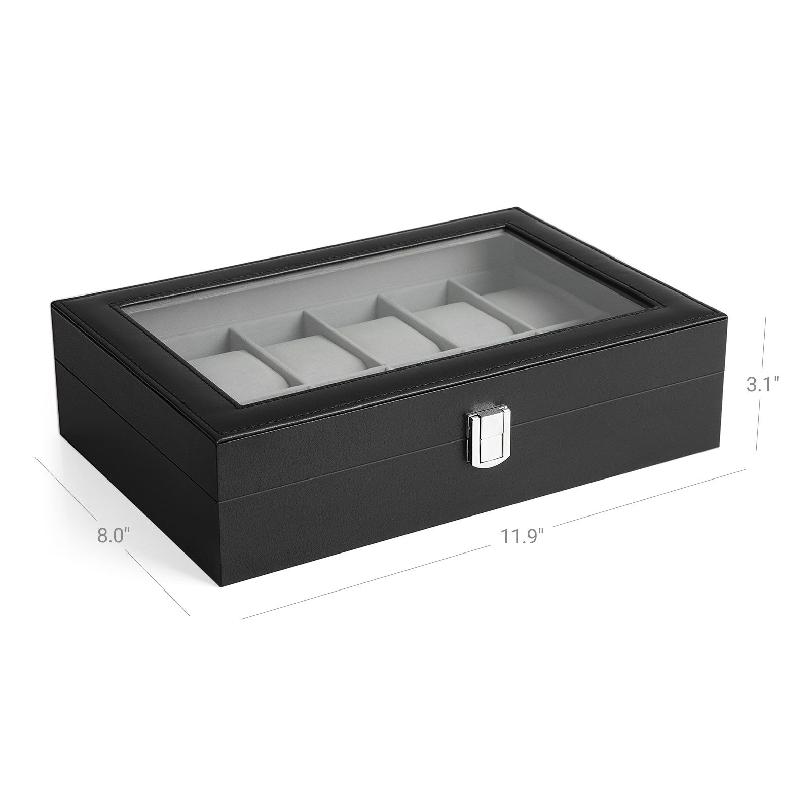 Your premium watch collection deserves a high-quality watch case, the watch case provides a smart choice for every watch owner.Shaped Watch PillowUnlike you ever tried, shaped pillows provided are surprisingly snug without being squished, perfectly keeps your watch collections stay in their correct shape while they are in storage.Generous Gift IdeaThis sophisticated watch organizer makes a thoughtful gift for Father's Day, Wedding Anniversary and Graduation Ceremony.Wise BudgetThe watch case safely protects your luxury watches against damages, scratches, and stains, which helps to save on repairs. With that in mind, there is no doubt that buying a watch box is a wise investmentMultiple ChoicesWe have a variety of watch boxes in many sizes and colors, simply search watch box to find more.