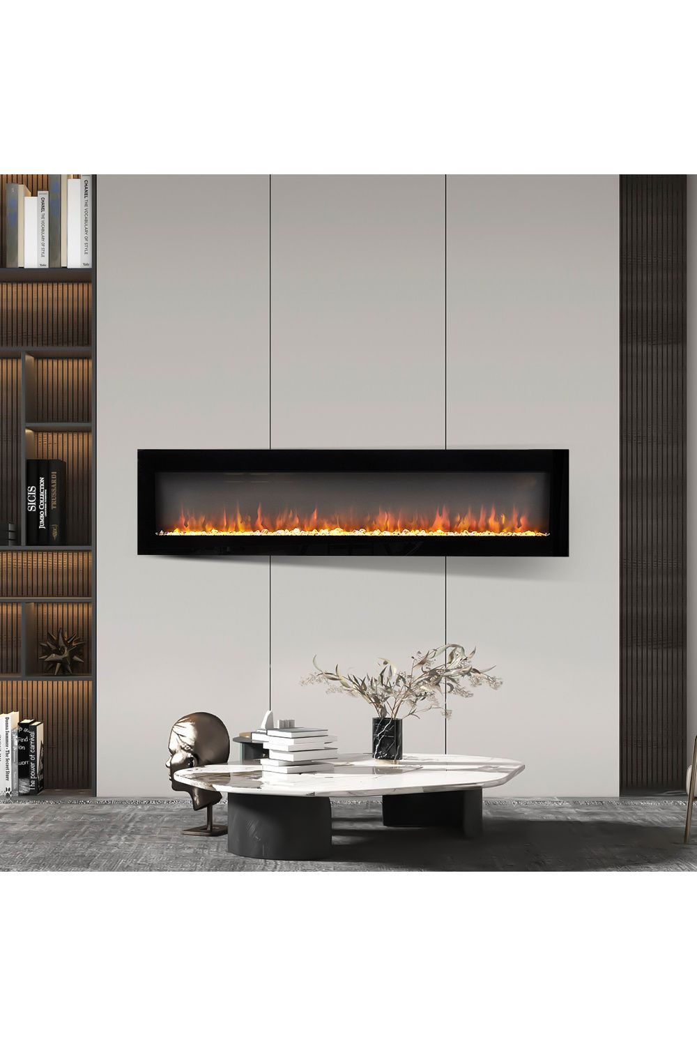 Transform your space with a touch of elegance with our electric fireplace. Effortlessly set the ambiance with customizable flame brightness and color settings. Easy installation frees up floor space, offering versatility in mounting options. With powerful heat output, it warms any room, ensuring cozy comfort all winter long.