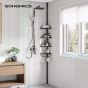 telescopic bathroom corner shelf brings more storage space for your bathroom essentials. It is easy to assemble and no drilling and tools are required. The height is also adjustable. The max. height of this shelf is 3.05 m. Adopting the advanced coating process, the tube is rust-resistant. A great holder for your bathroom essentials with 4 large trays and 1 towel rail. Good stability with the strong spring tube on the top and the caps on the two sides, it is stable and will not collapse easily after being assembled. adjustable shower shelf not only can add the storage space but also become an attractive accent for your bathroom, don't miss it!!!