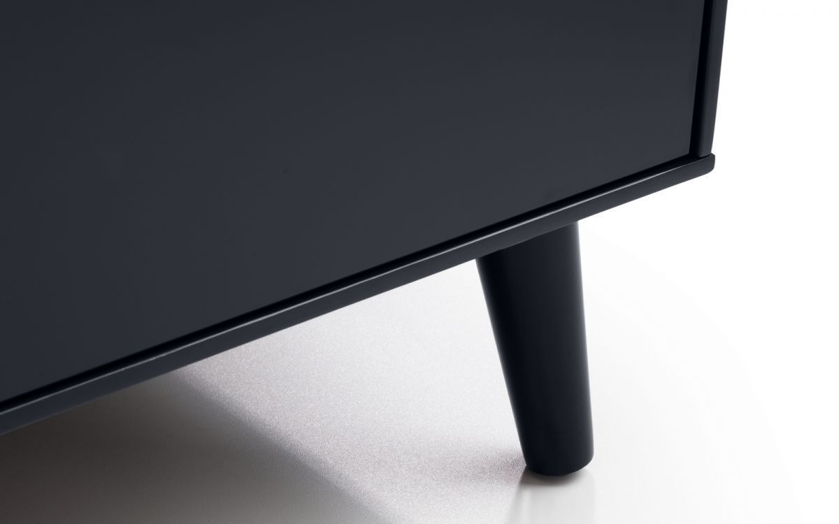 A stylish, retro-inspired chest with five large drawers in an immaculate matt anthracite lacquered finish, with complementary tapered black finish legs and recessed handles to provide easy opening. The sleek Scandinavian feel fits beautifully with any decor.