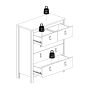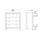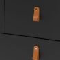 A modern chest of drawers in a striking design complete with brown leather tab handles, also available in white