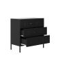 Add a touch of modern elegance to your bedroom with the CALI Black Chest of Drawers, exclusively offered by Home Done's furniture collection. This stylish chest boasts a sleek black finish, sturdy steel frame, and ample storage space. Perfect for keeping your bedroom organized and clutter-free.
