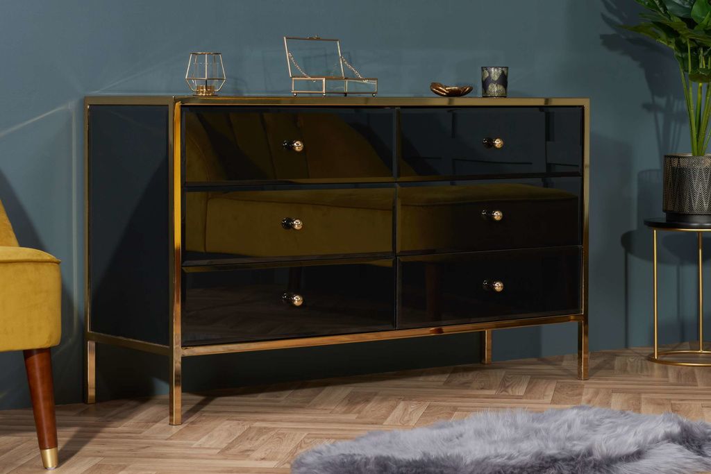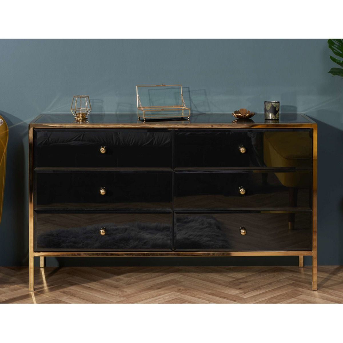FIESTA Black Chest of Drawers - Large-sized, 6 Drawers, Double