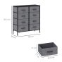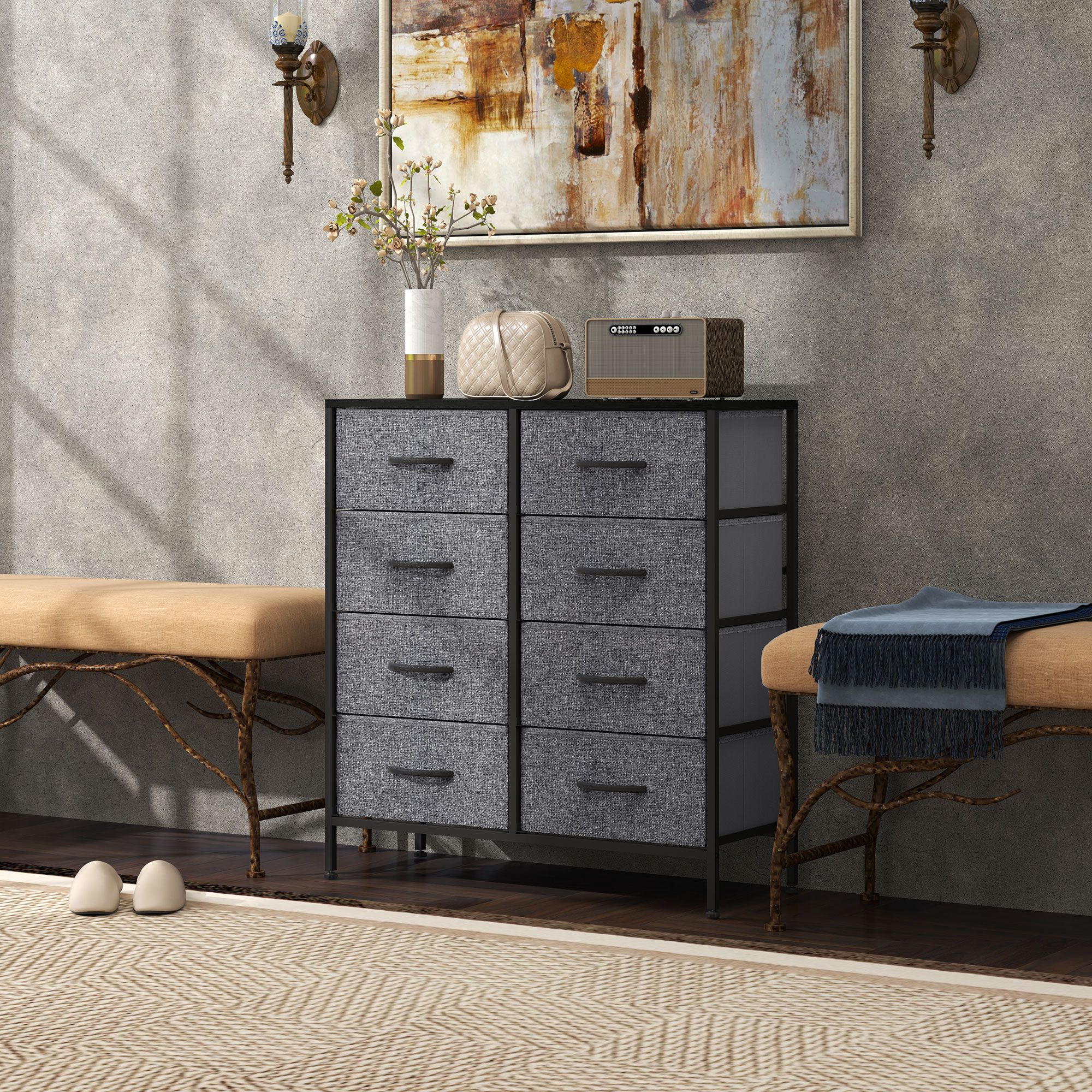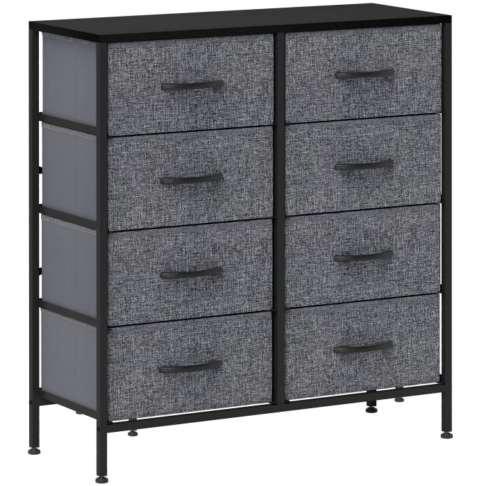 JAPRIS Black Chest of Drawers - Medium-sized, 8 Drawers, Double, Fabric Drawers