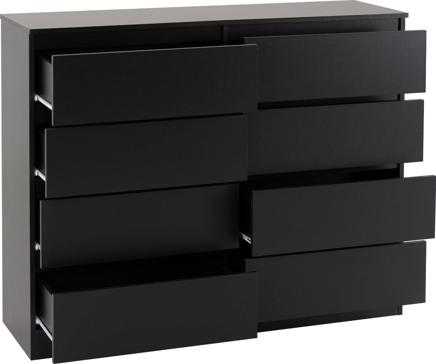 MALDEN Black Chest of Drawers - Large-sized, 8 Drawers