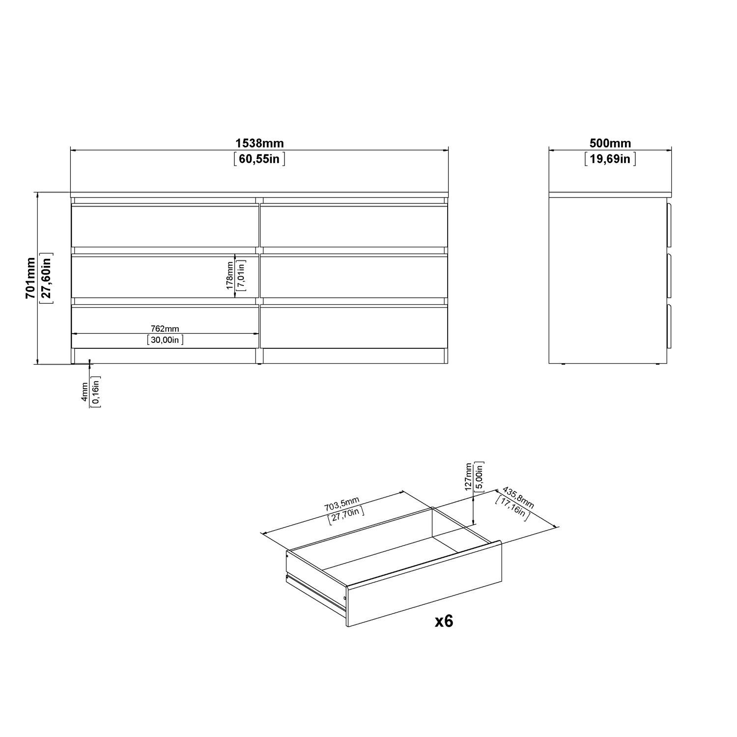 NANAIMO Black Chest of Drawers - Extra Large-sized, 6 Drawers