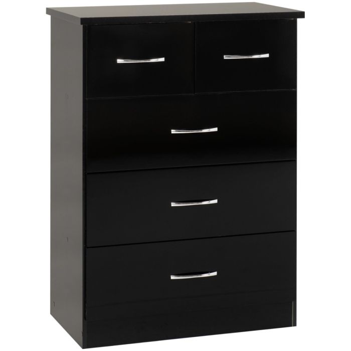 NEWBIGGIN III Black Chest of Drawers - Medium-sized, 5 Drawers