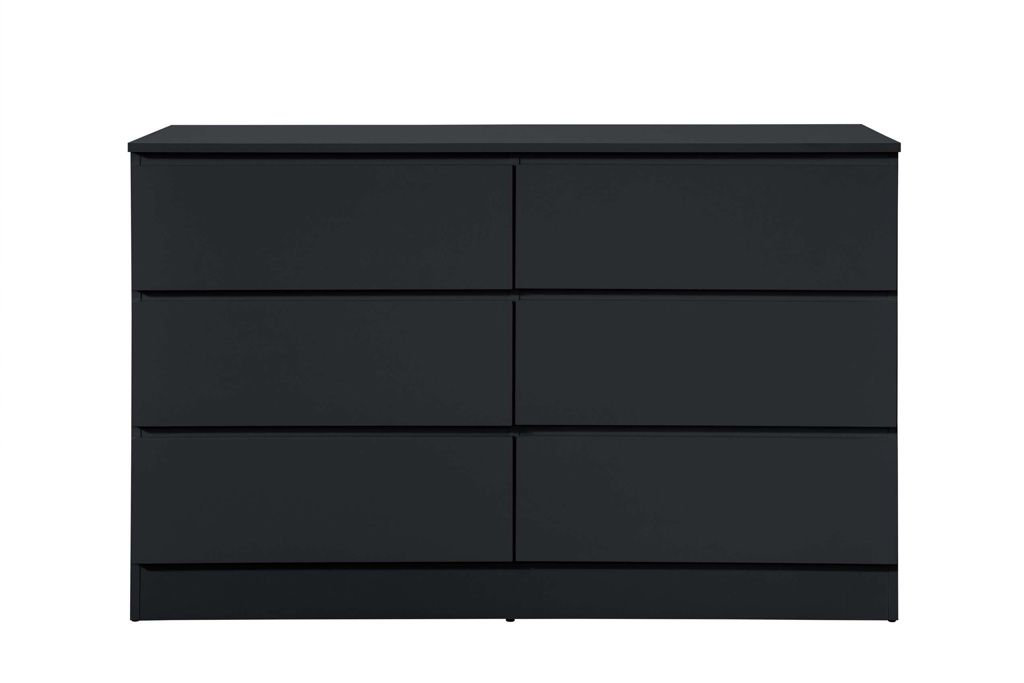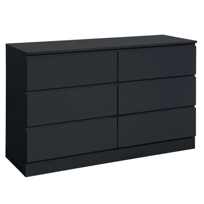 OPAL Black Chest of Drawers - Large-sized, 6 Drawers, Double