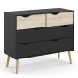 OSSETT Black Chest of Drawers - Large-sized, 4 Drawers