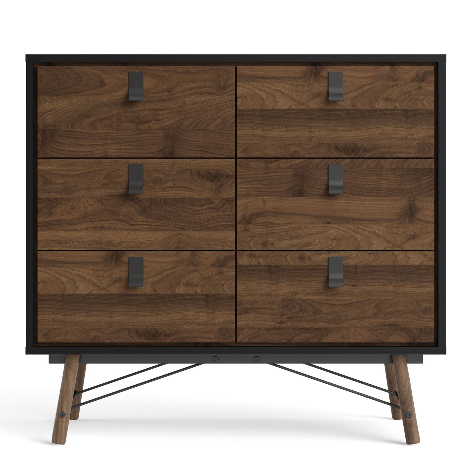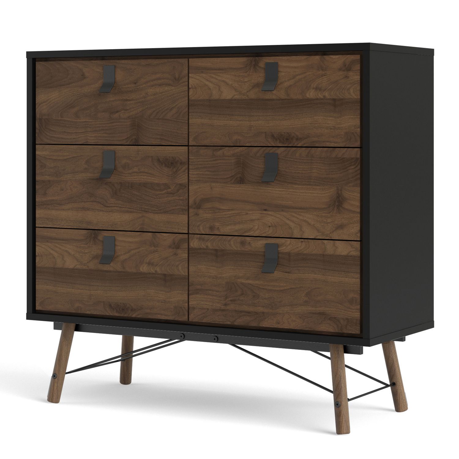 RYTON Black Chest of Drawers - Medium-sized, 6 Drawers, Double