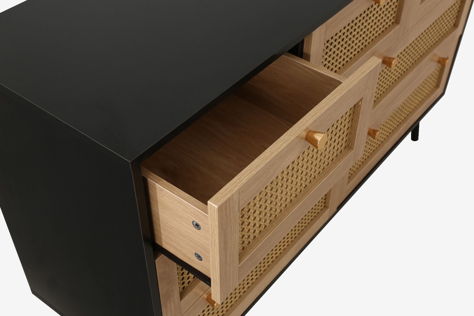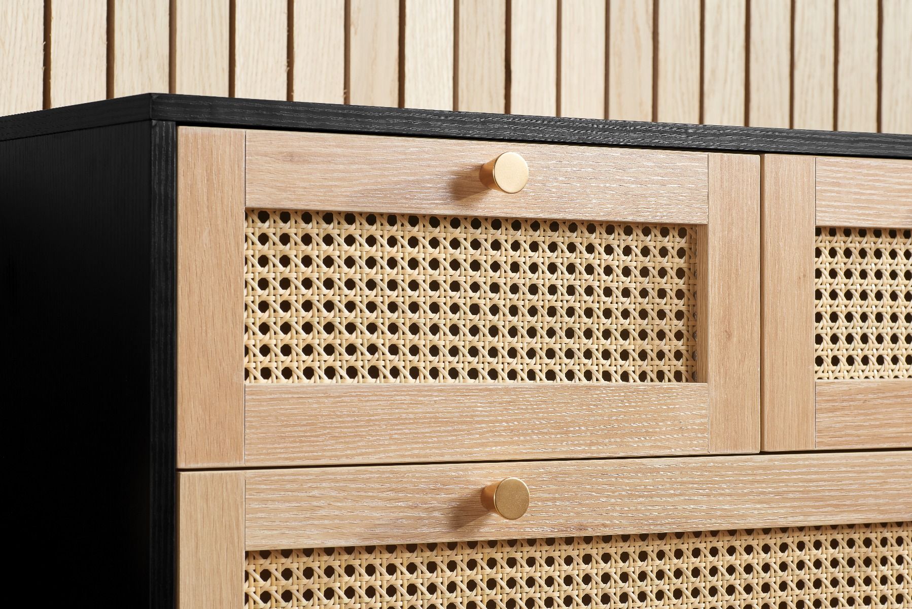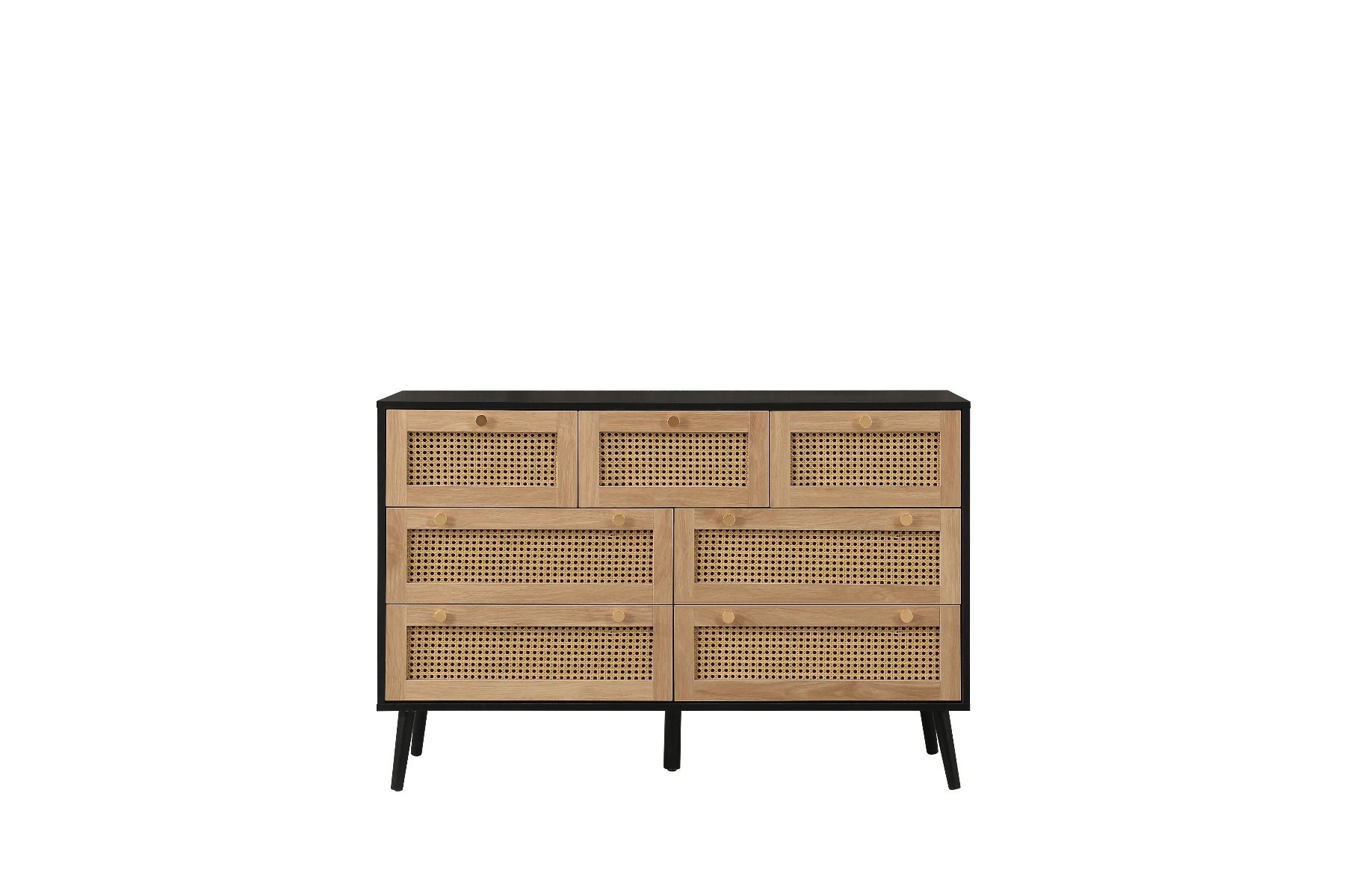 CARDANO Black Rattan Chest of Drawers - Large-sized, 7 Drawers