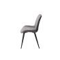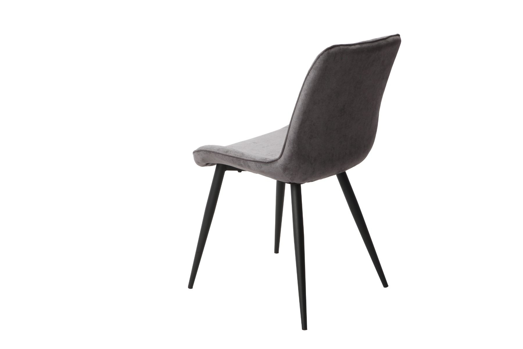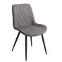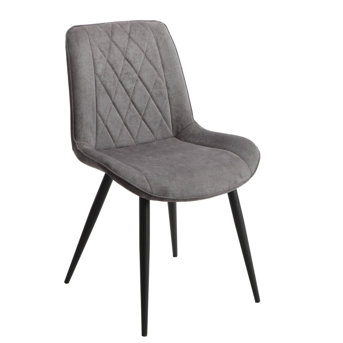 This pair of dining chairs feature a distinctive diamond stitching and comfort curved seating design. These chairs are upholstered in a soft grey cord style fabric with padded diamond stitched design. The interior features soft foam and a plastic injection moulded interior for your comfort. Black painted tapered metal legs complete the look.