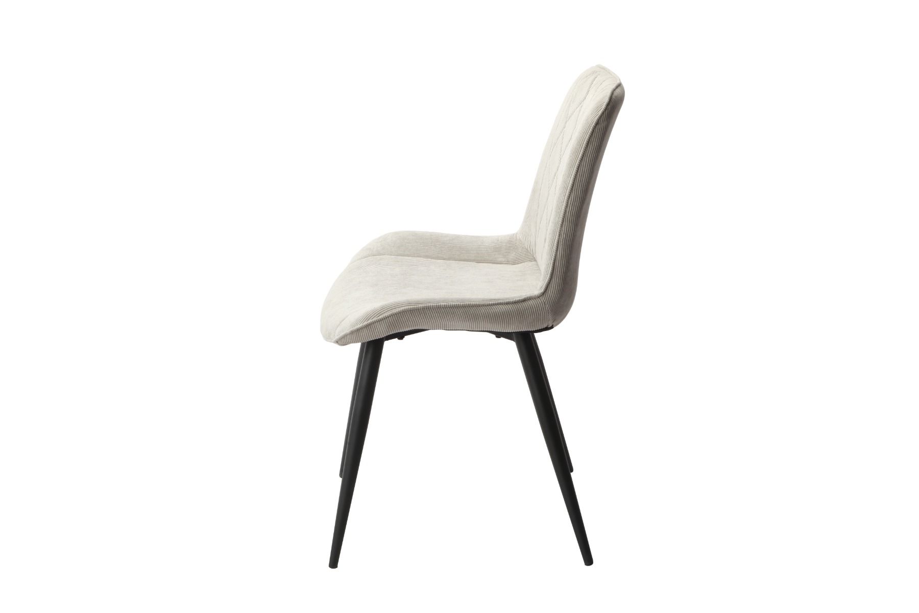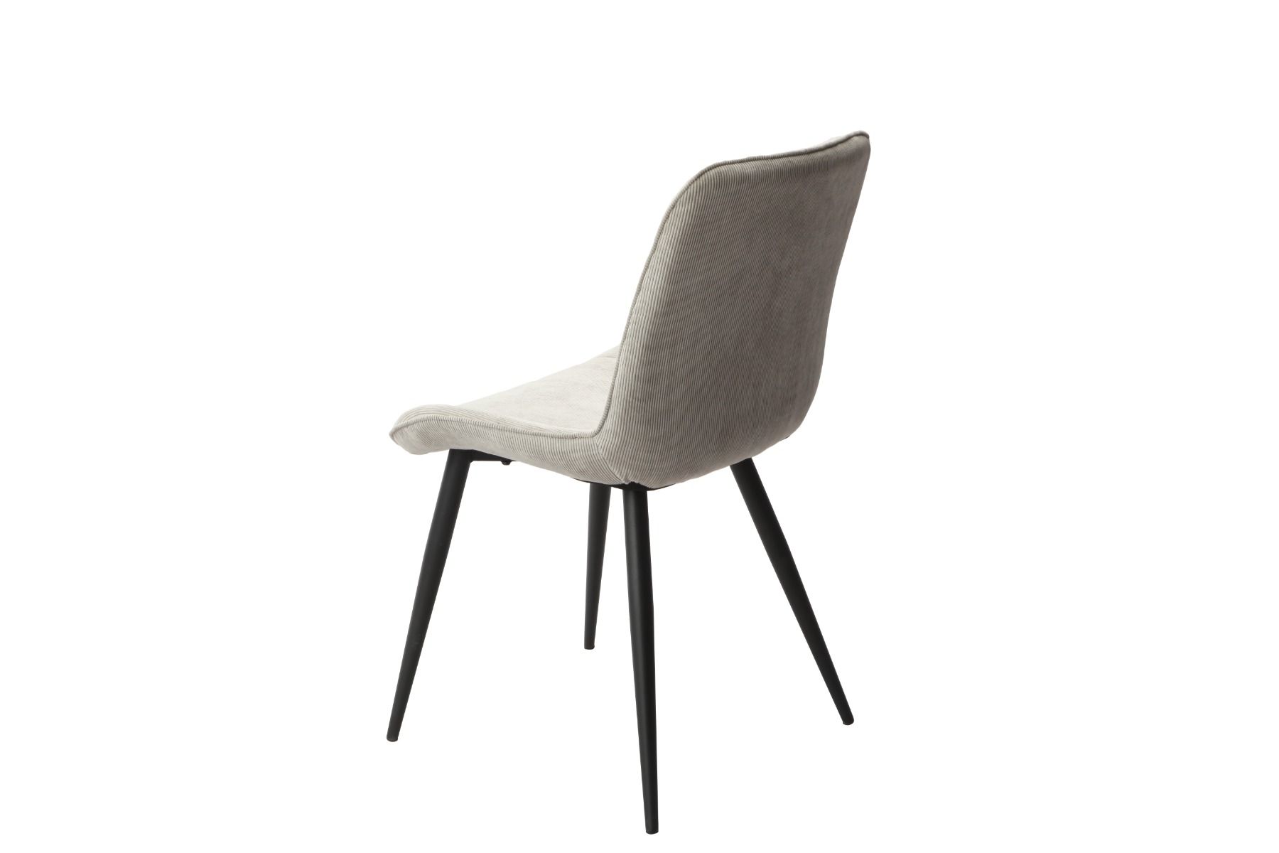 This pair of dining chairs feature a distinctive diamond stitching and comfort curved seating design. These chairs are upholstered in a light grey cord style fabric with padded diamond stitched design. The interior features soft foam and a plastic injection moulded interior for your comfort. Black painted tapered metal legs complete the look.