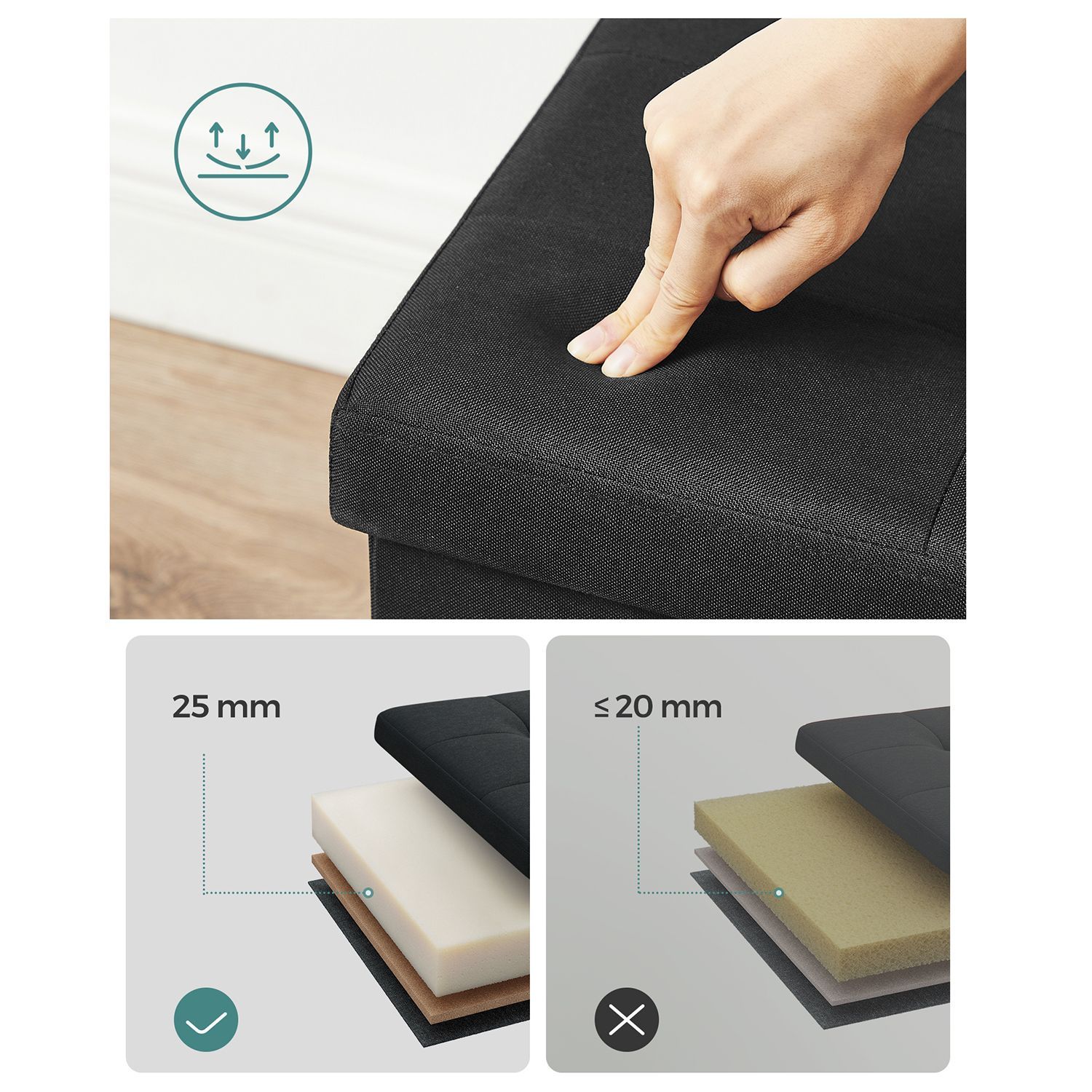 More Space-Saving than a Sofa or Wardrobe: Instead of getting another sofa for additional seats or a new wardrobe for more storage, you can get the seat and storage you need in one go with this space-saving ottoman.Where to Put this Storage Ottoman: Opposite the sofa in the living room? At the end of your bed in the bedroom? Or next to the closet in the hallway? The only limit is your imagination! When not in use, you can fold it and stow it away easily under your bed or on a shelf.