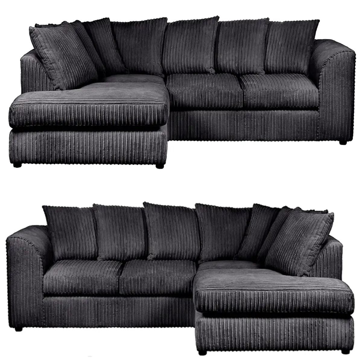 Blake Jumbo Cord Black Corner Sofa - Left and Right Arm