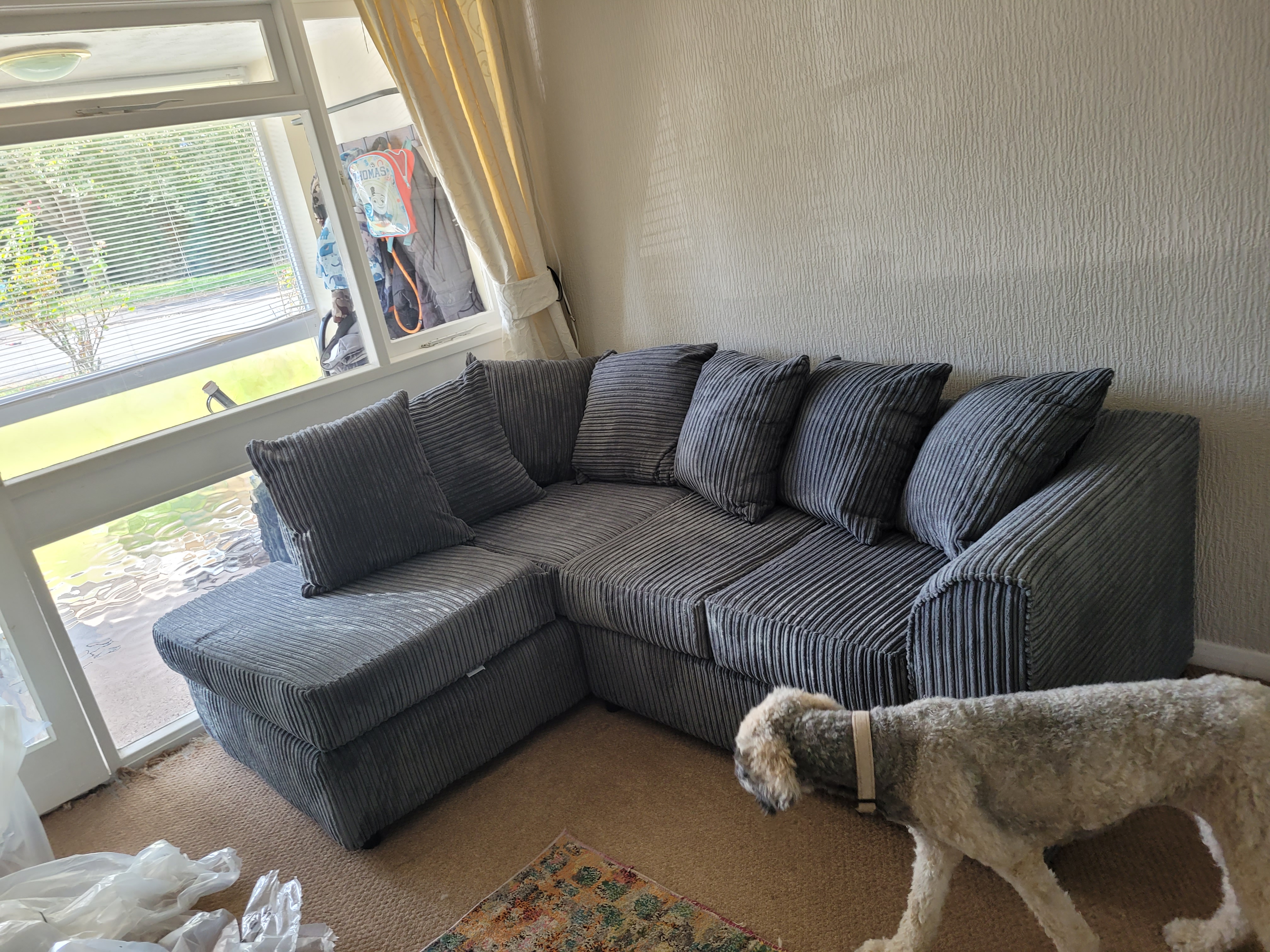Blake Jumbo Cord Grey Corner Sofa - Right and Left Arm