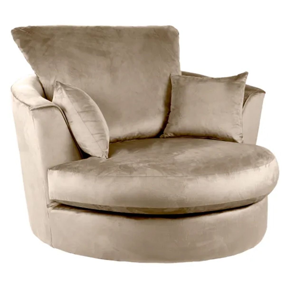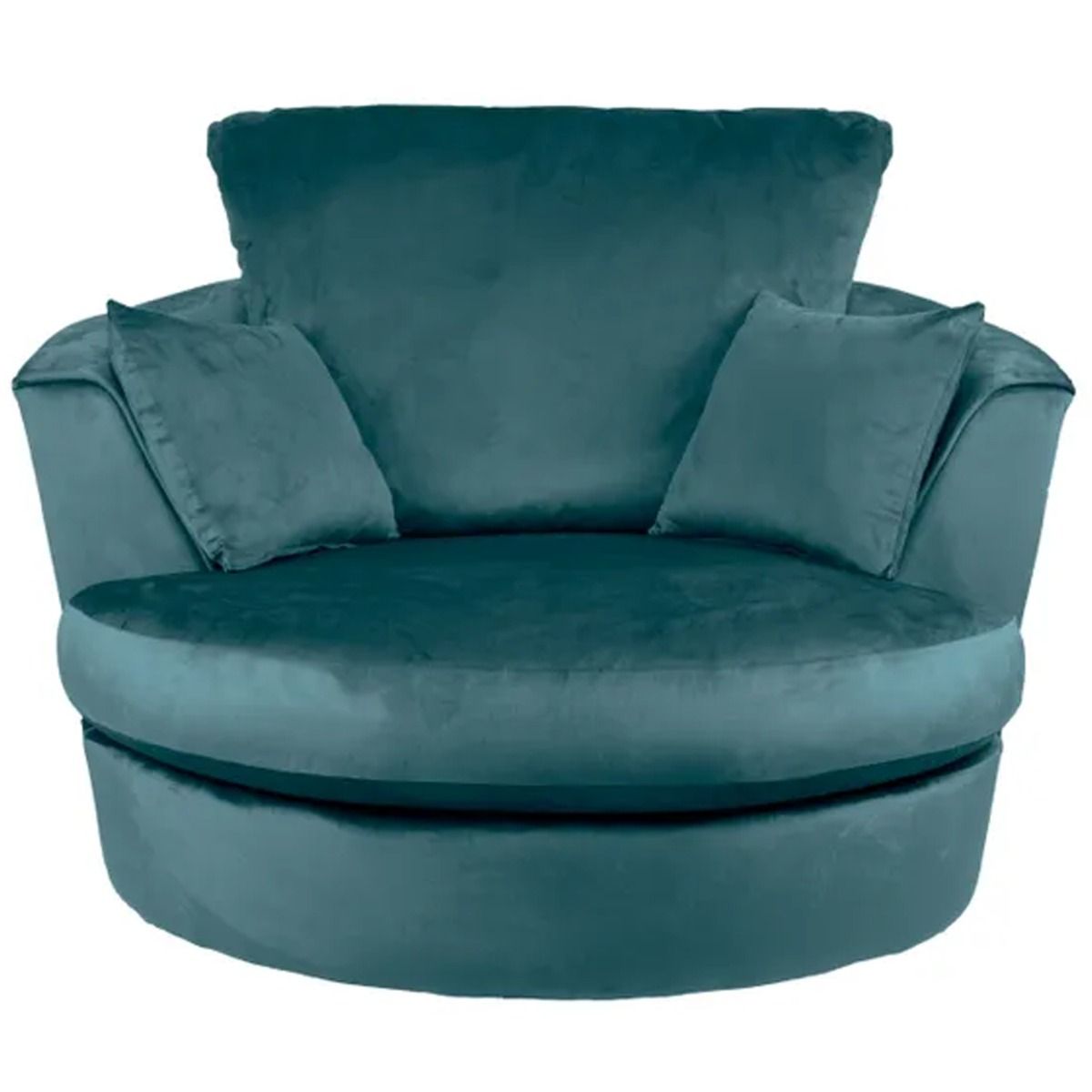 The Blake Swivel Chair boasts distinctive velvet upholstery, perfect for bringing a modern style that will liven up any living space. Boasting a compact design perfect for any space, this chair provides luxurious comfort thanks to the foam and fibre filling of the deep set cushions and sprung seat which allows you to really sink in and unwind. This stylish and versatile chair also swivels on a sturdy metal base and is the perfect piece to suit a variety of home settings and styles. Available in a choice of colours