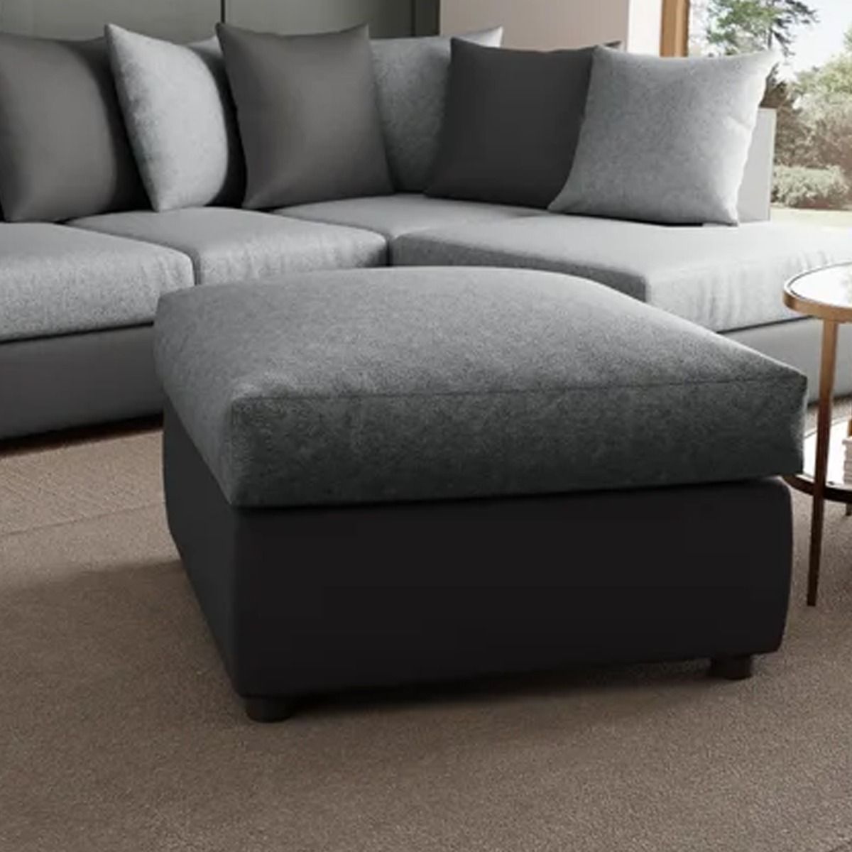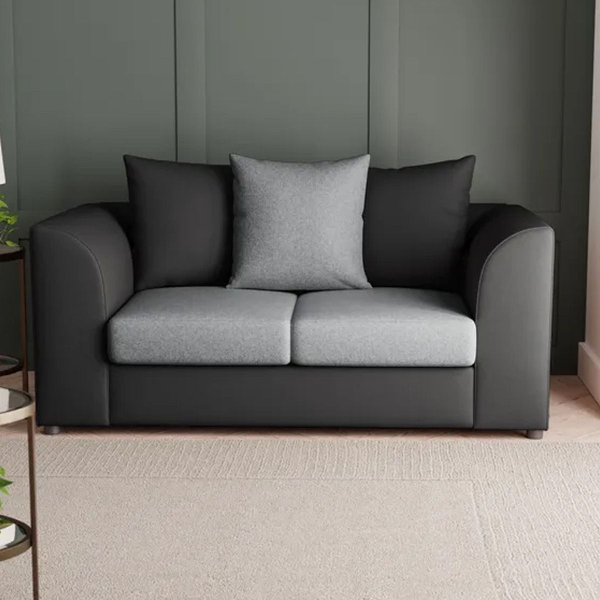 - Upholstered in a PU leather with complementing Jumbo cord fabric cushions