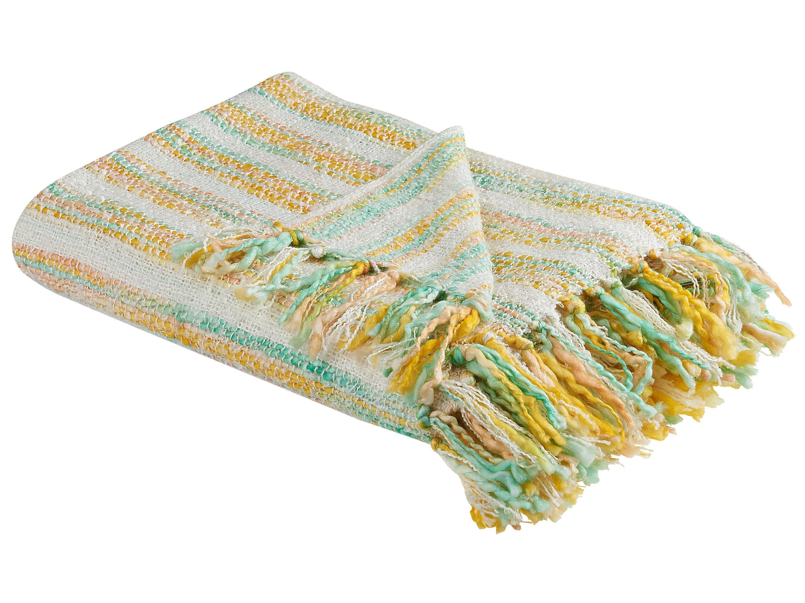 Soft to the touch and cosy, this blanket is sure to become your favourite home textile. High-quality acrylic makes it durable and warm. Featuring a strip pattern in light shades of yellow and mint green, the blanket is a stylish addition to a modern and traditional living room or bedroom. Details: Color: Multicolour, Green, Beige, Yellow. Main material: Acrylic. Material Composition: 100% Acrylic Assembly: Does Not Require Assembly