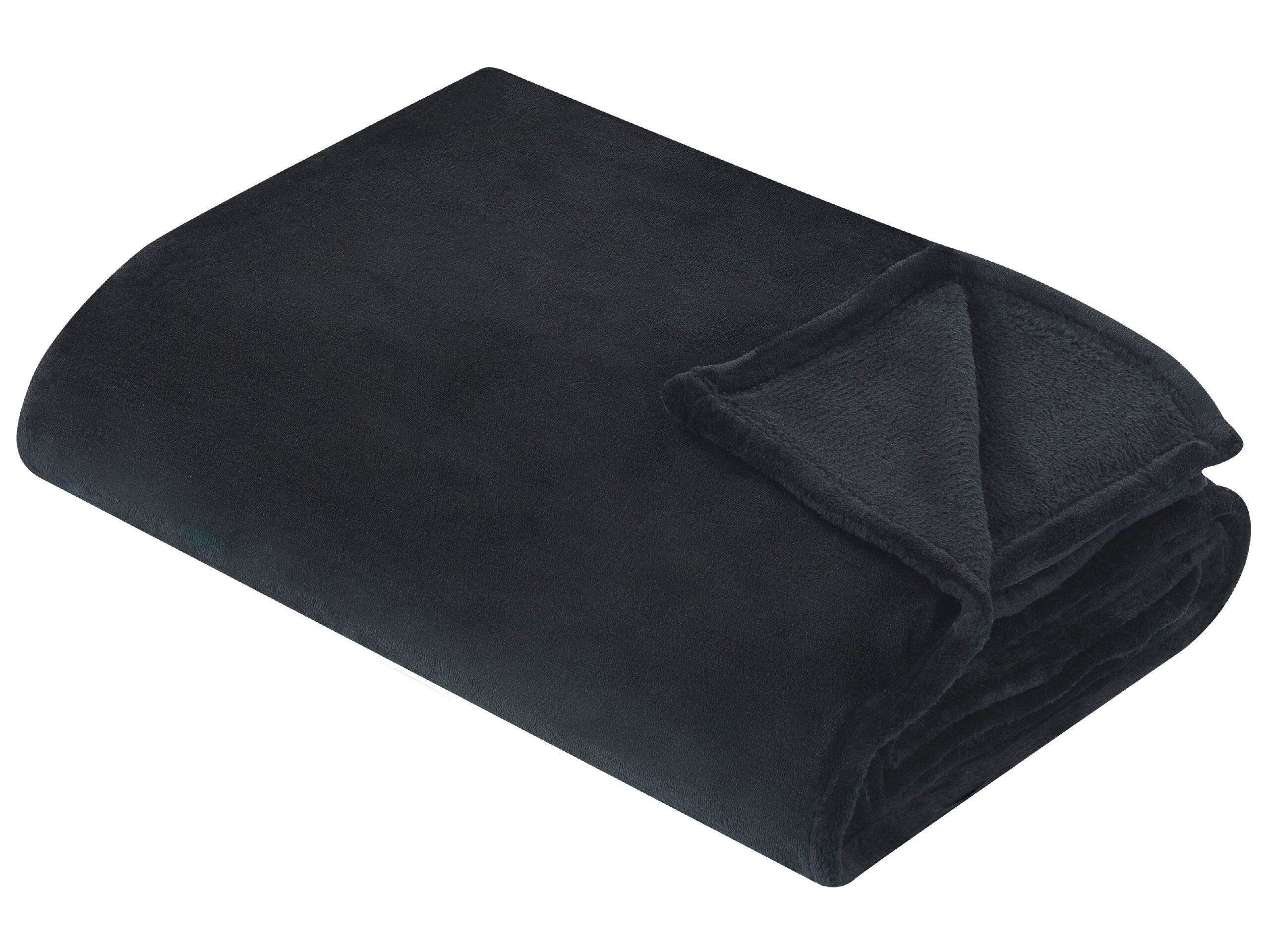 Decorate your sofa or bed with this stylish blanket, or snuggle under it - no matter which option you'll choose, this piece will come in handy. Its biggest feature is a pleasant to touch surface, which was made out of durable polyester in a trendy, black shade, which also makes it fit with a variety of modern decor styles. It's warm, so it will be a perfect companion for colder winter days. Details: Color: Black. Main material: Polyester. Material Composition: 100% Polyester Assembly: Does Not Require Assembly