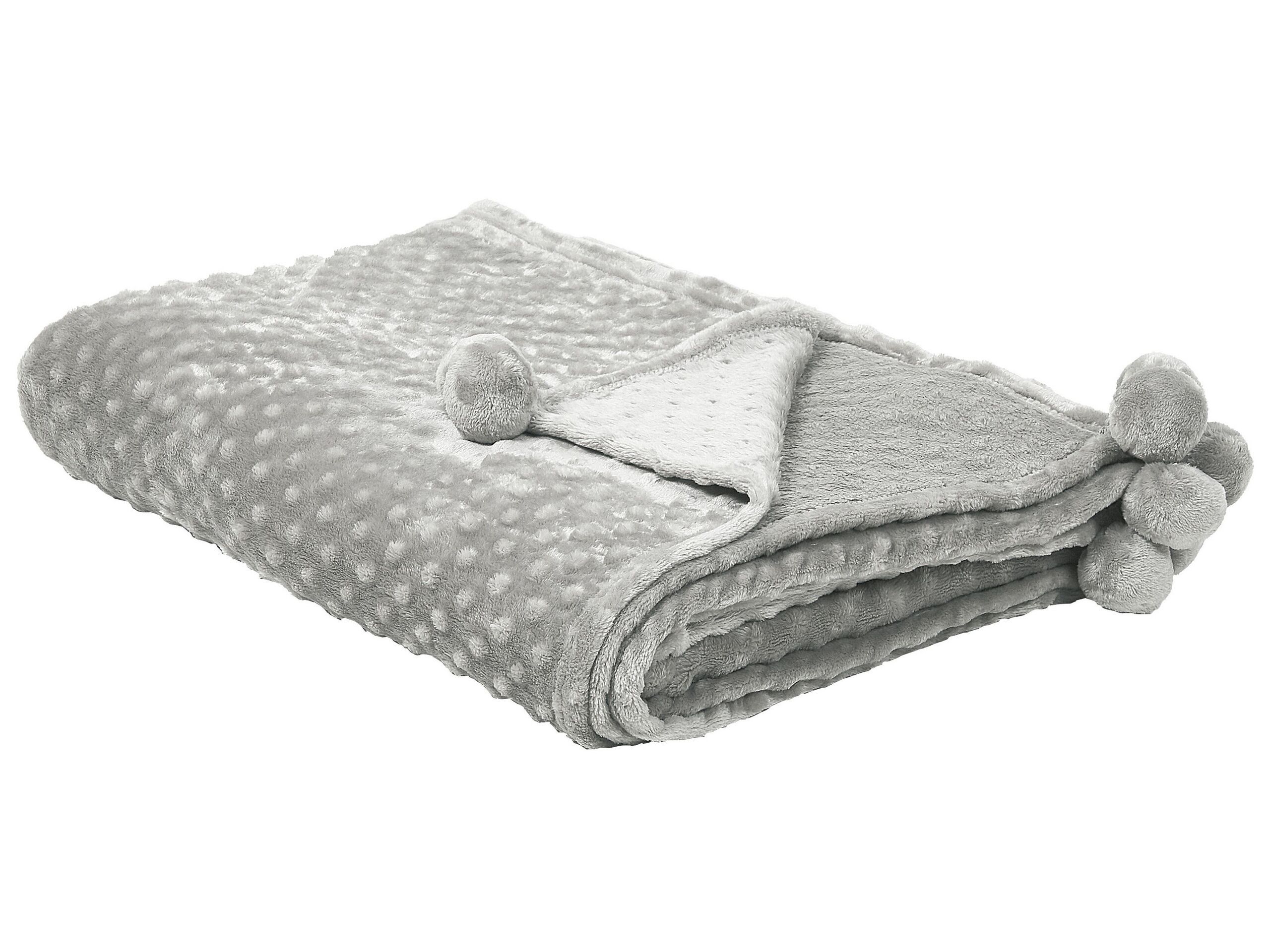 Fluffy and soft blanket is a perfect home accessory that adds cosiness to any interior. Made of a pleasant to the touch material with delicate popcorn texture, it features pom pom decorated edges that give it a charming look. This practical blanket will work also well as a bedspread or a sofa decoration. Details: Color: Grey. Main material: Polyester. Material Composition: 100% Polyester Weight: 1000 Assembly: Does Not Require Assembly