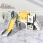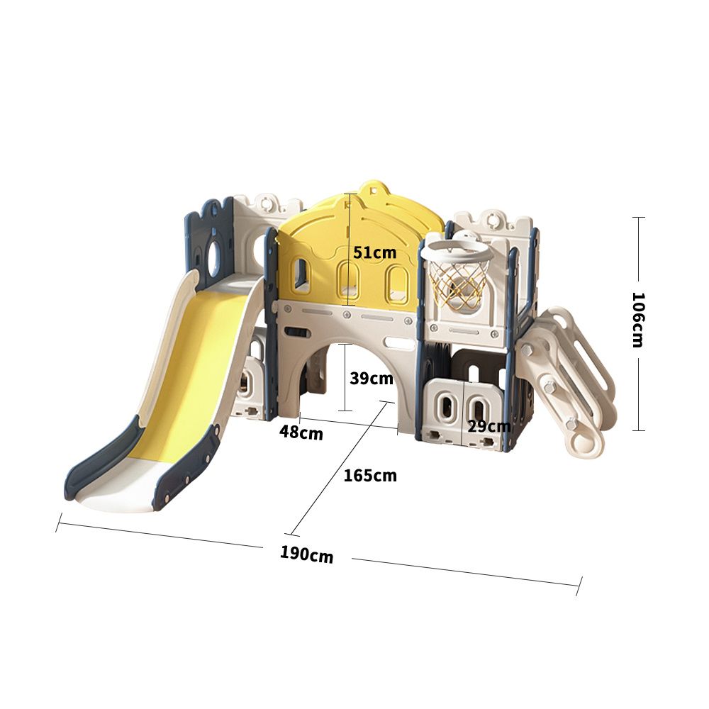 Blue and Yellow Kids Playset with Slide Basket Hoop Indoor Toddler Playground