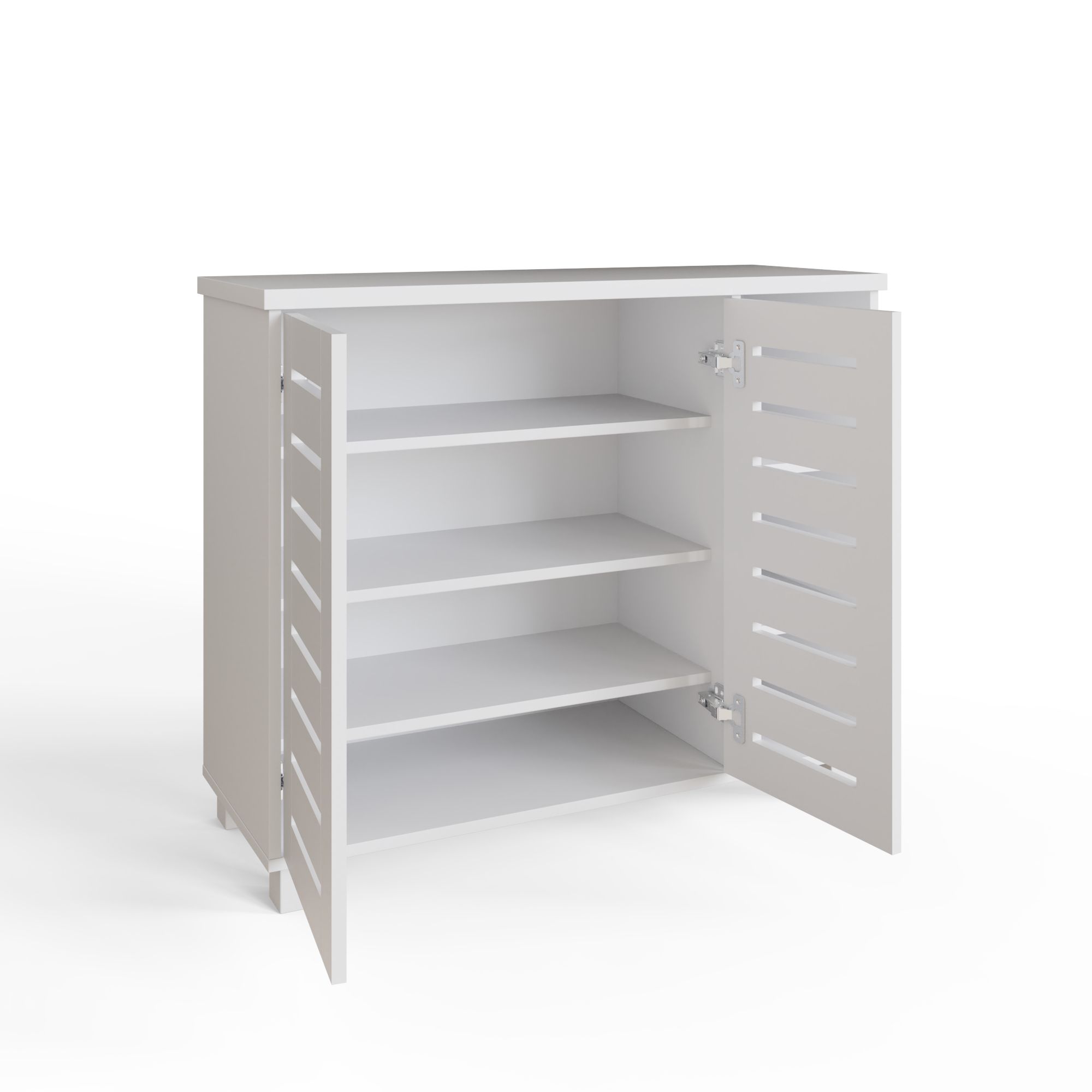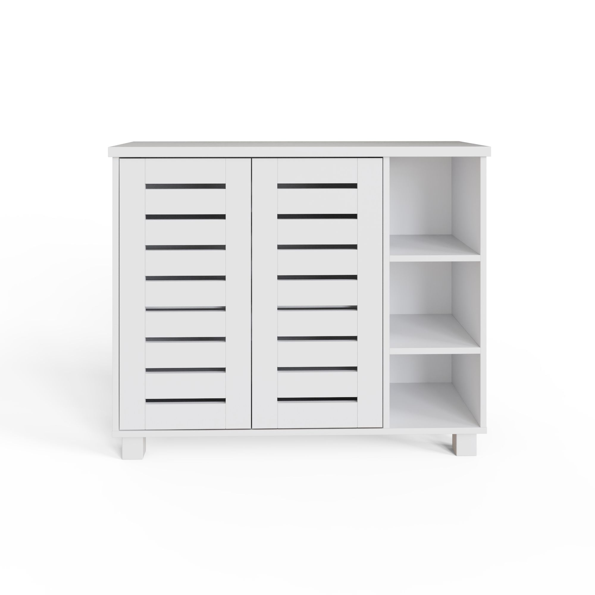 BOLUX White Shoe Cabinet - Medium-sized, 2 Door, Open Compartments, 15 Pair Storage