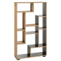 Designed to stand out, this modern bookcase offers a stylish way to organise and showcase favourite reads, decor, or keepsakes. The open, multi-level shelving brings a contemporary touch to any room, with a warm oak effect and deep black accents for added contrast. Made from laminated particle board, it's a durable and versatile addition to a home office, lounge, or reading nook.