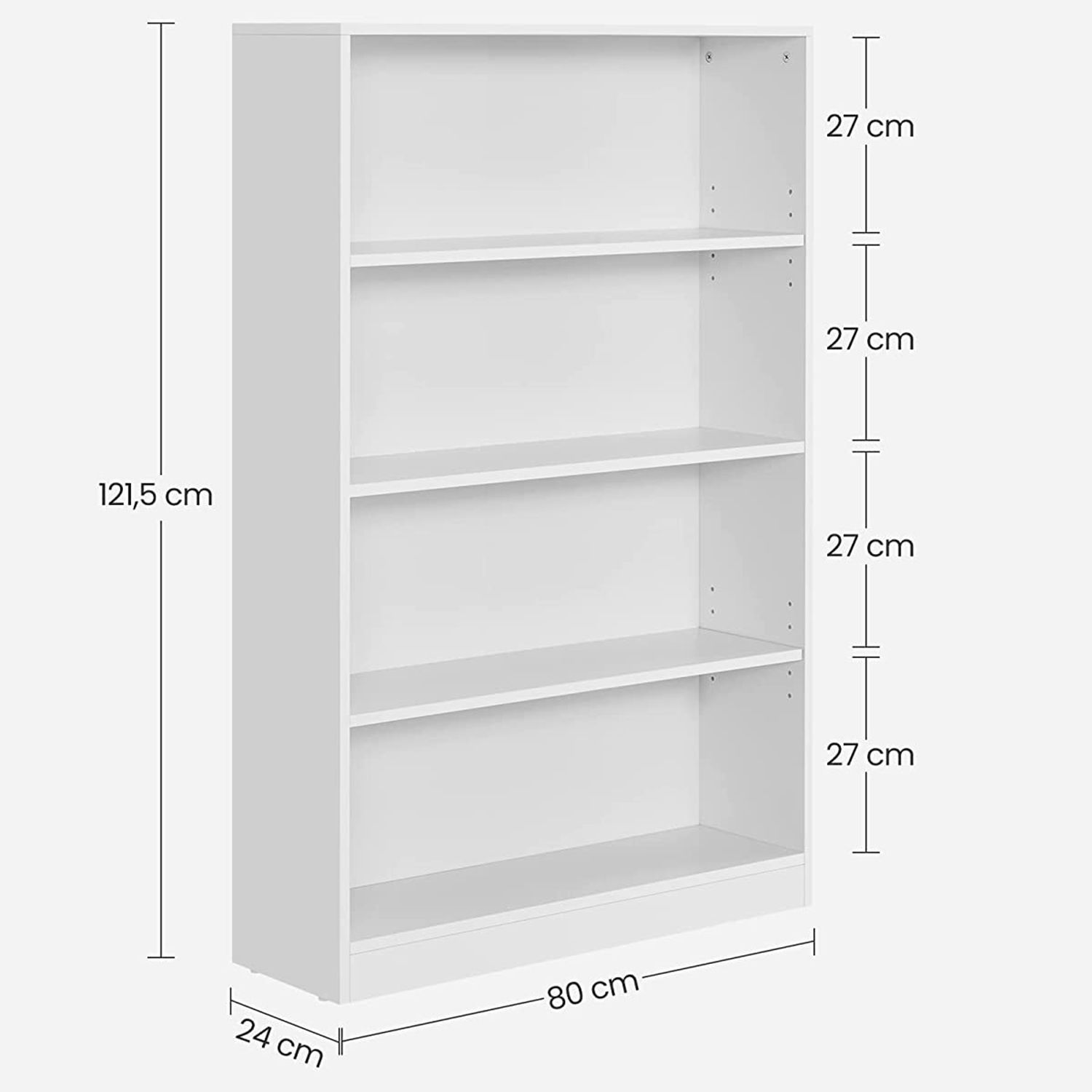 Bookcase - MONNOS 4 Tier Shelf with Adjustable Shelves - White